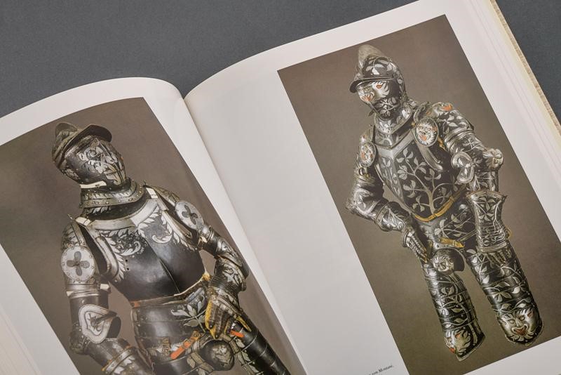 "L' armeria Trapp di Castel Coira - Die Churburger Rustkammer - The armoury of the Castle of Churburg". 2 Vol. Binding with manual processing of the cover, leather back with gold imprints, cardboard, canvas-covered slipcase. Vol. I°: anastatic reprint of 1929 edition, 516 pages with 72 two-toned illustrations, English text. Vol. 2°: 404 pages, 610 coloured and two-toned illustrations, text in Italian, English and German.
