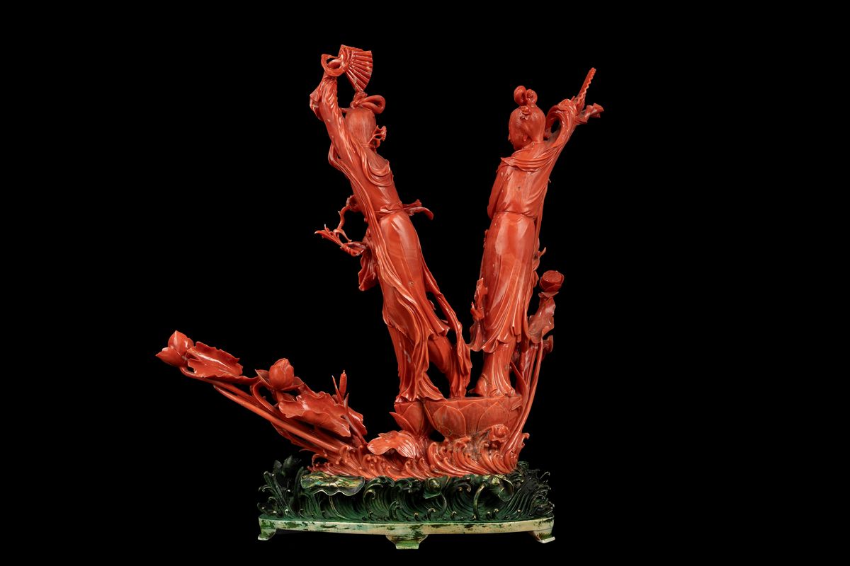 ☼A CARVED GROUP OF RED CORAL, China, Qing Dynasty, late 19th century