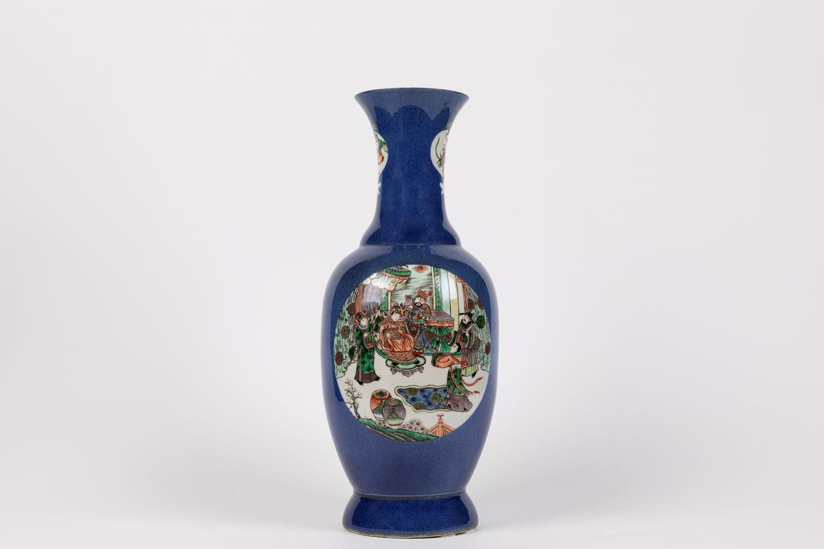 洒蓝釉开窗五彩四季花鸟纹花瓶,中国,20世纪初