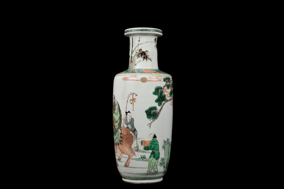A RARE FAMILLE VERTE PORCELAIN ROULEAU VASE, China, Kangxi period (1661-1722)