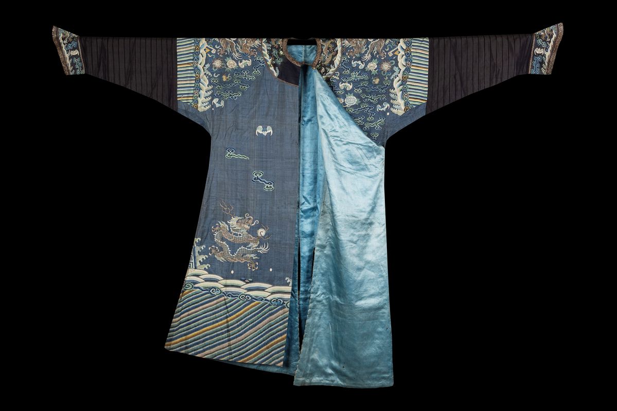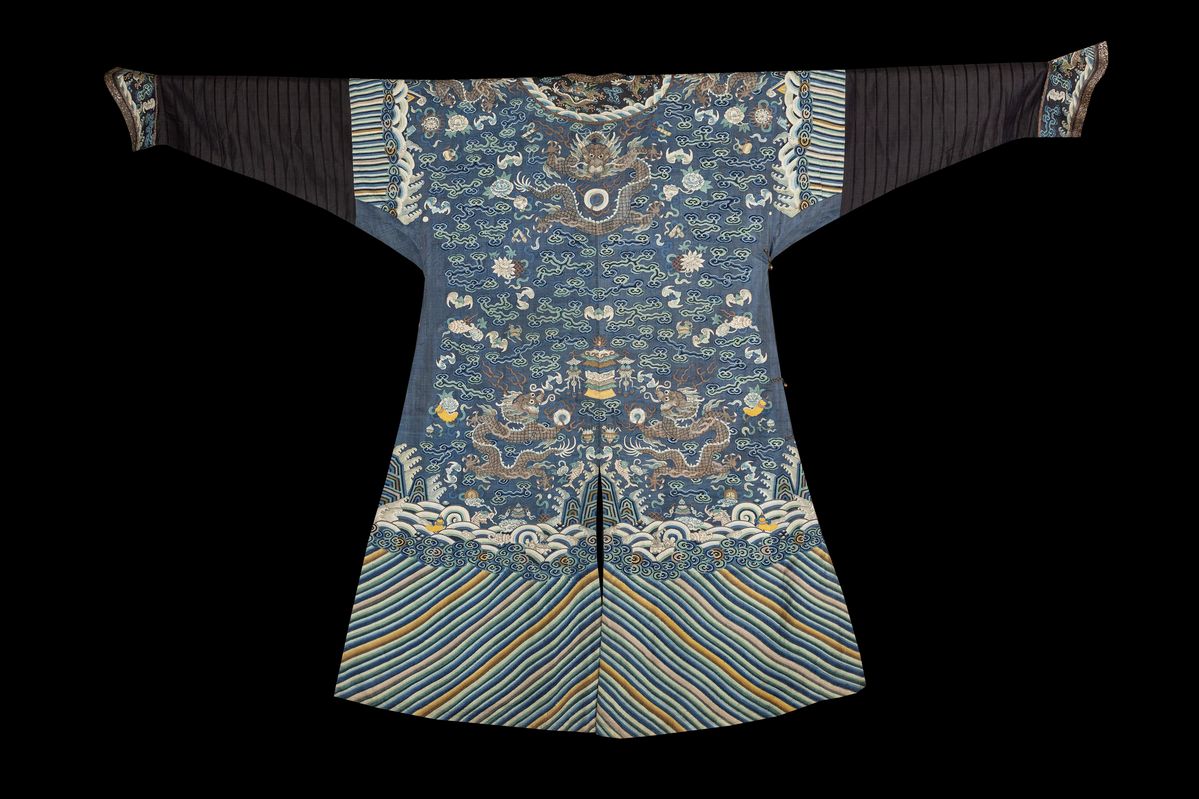 Decorated with the kesi technique, with the classic nine dragons chasing each other in the clouds, waves and bajixian.