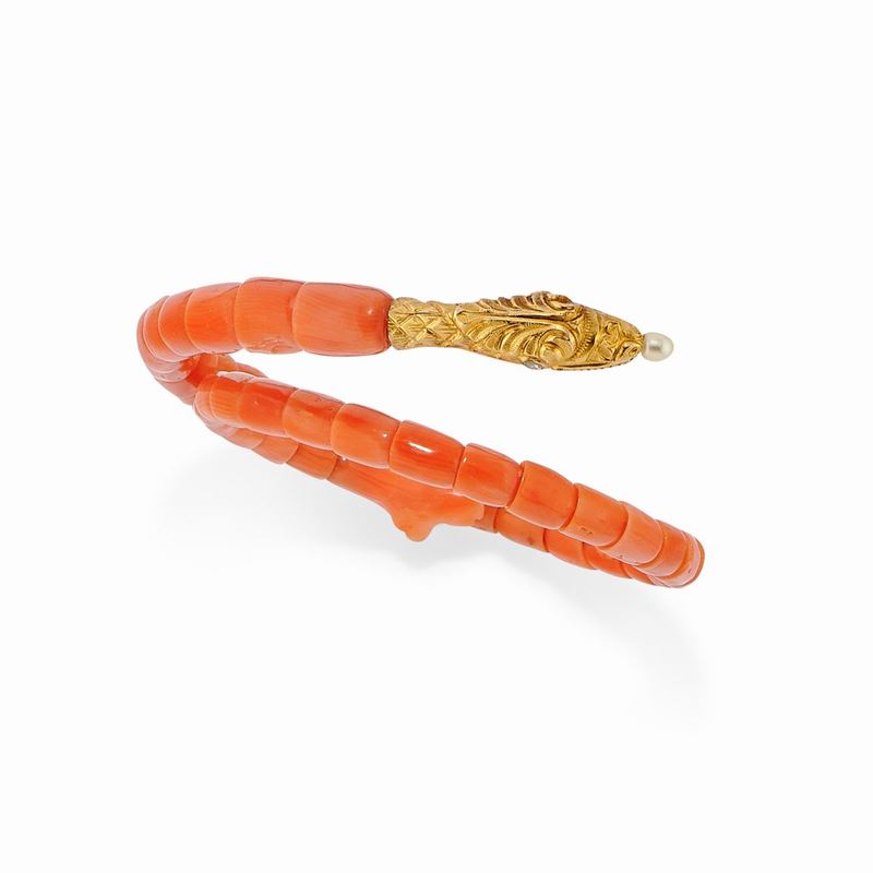 A 18k yellow gold, coral, cultured pearl and synthetic stones bracelet, defects