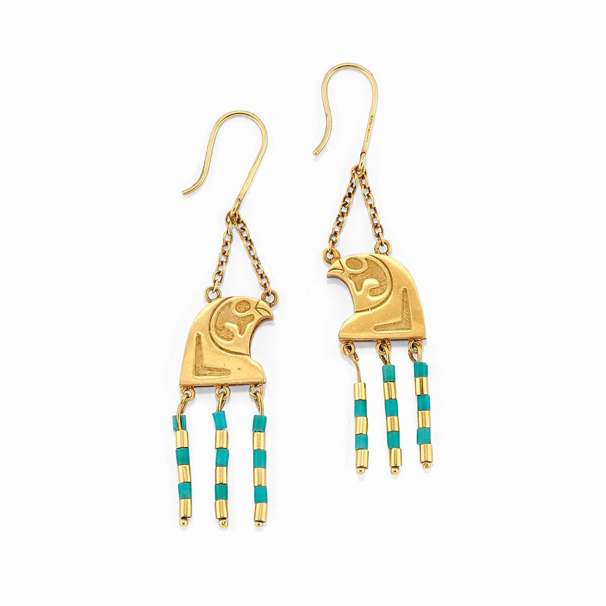 A 18k yellow gold, enamel and turquoise demi parure