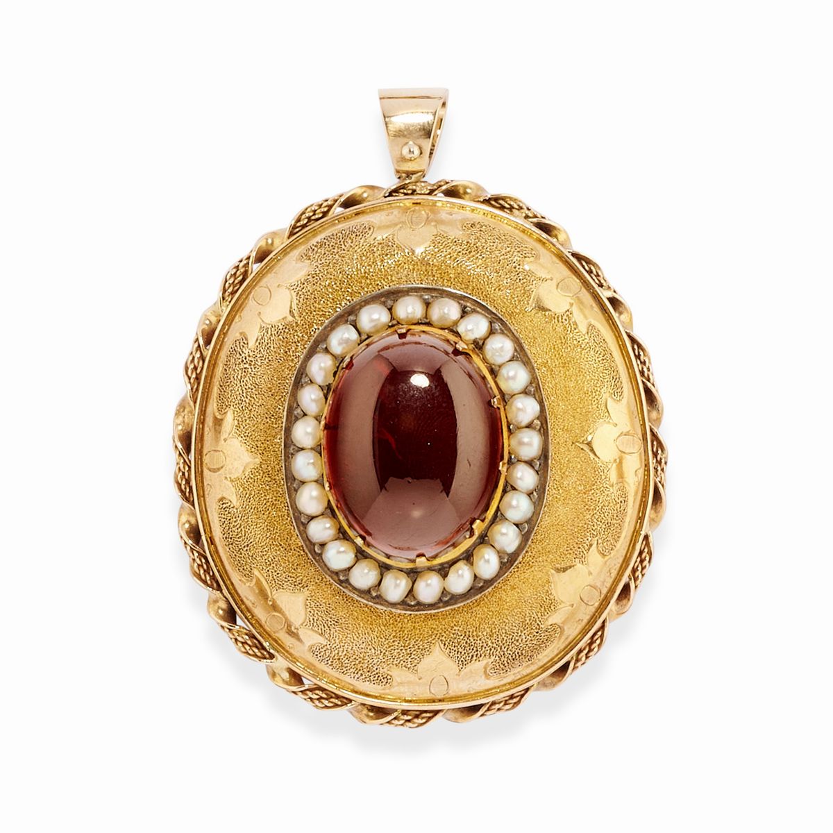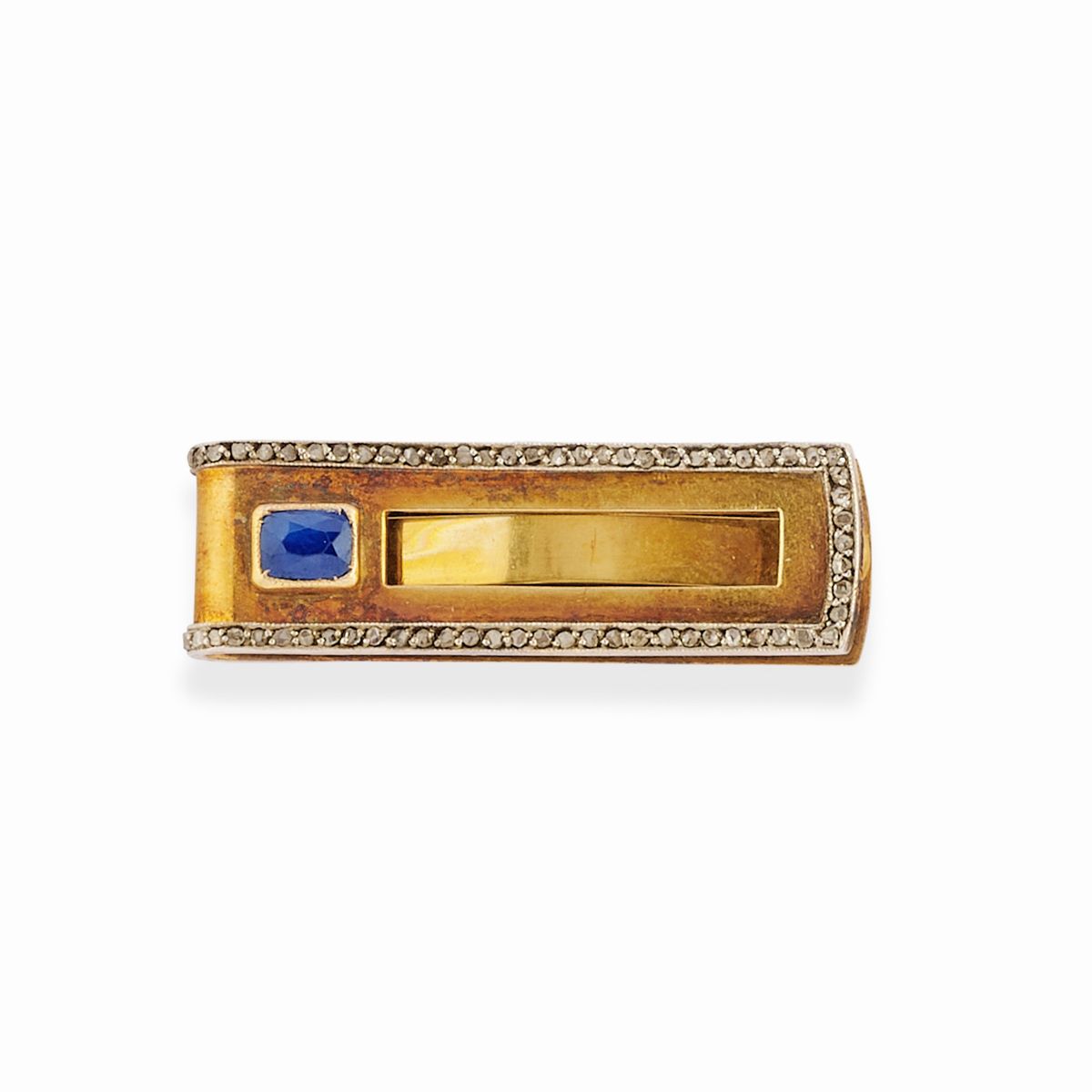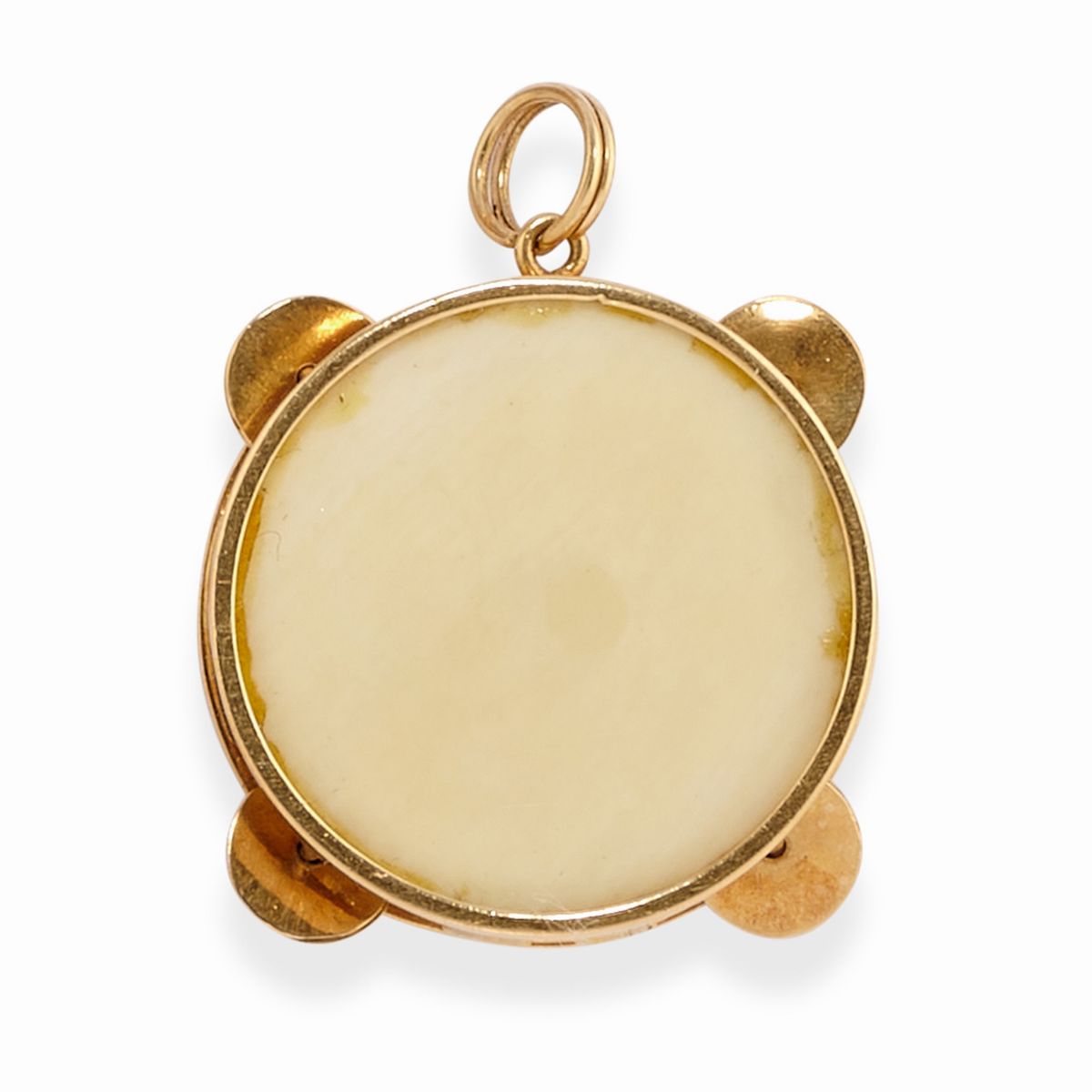 18k, 14k, 9k goldconsisting of four pendants, one brooch, a pair of earrings, and a money clip, in various shapes and depictions, with decorations in diamonds, pearls, and colorated stones.