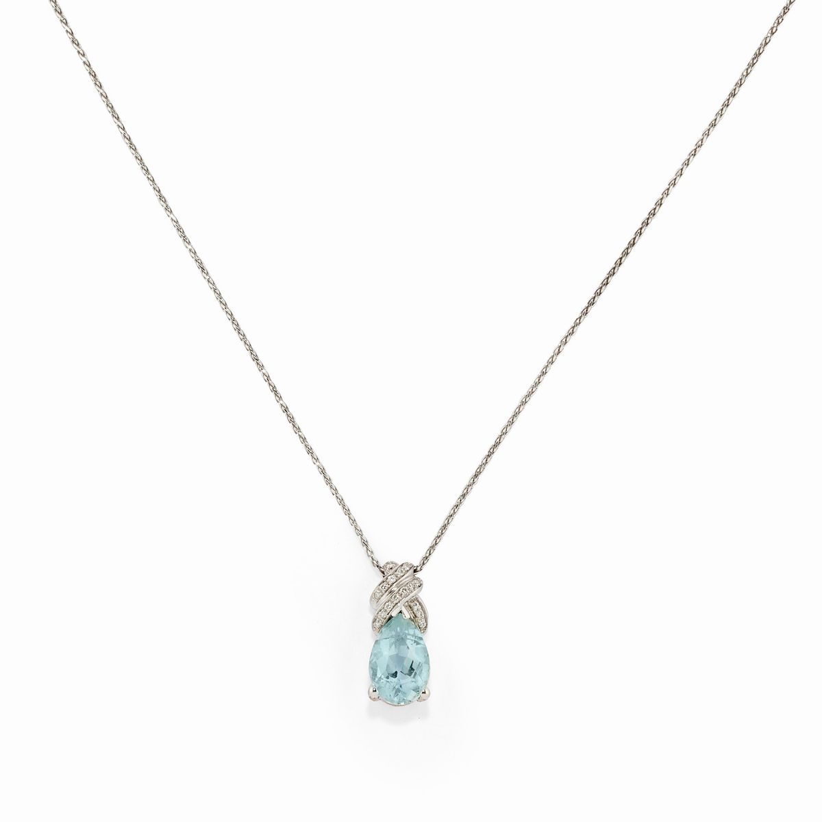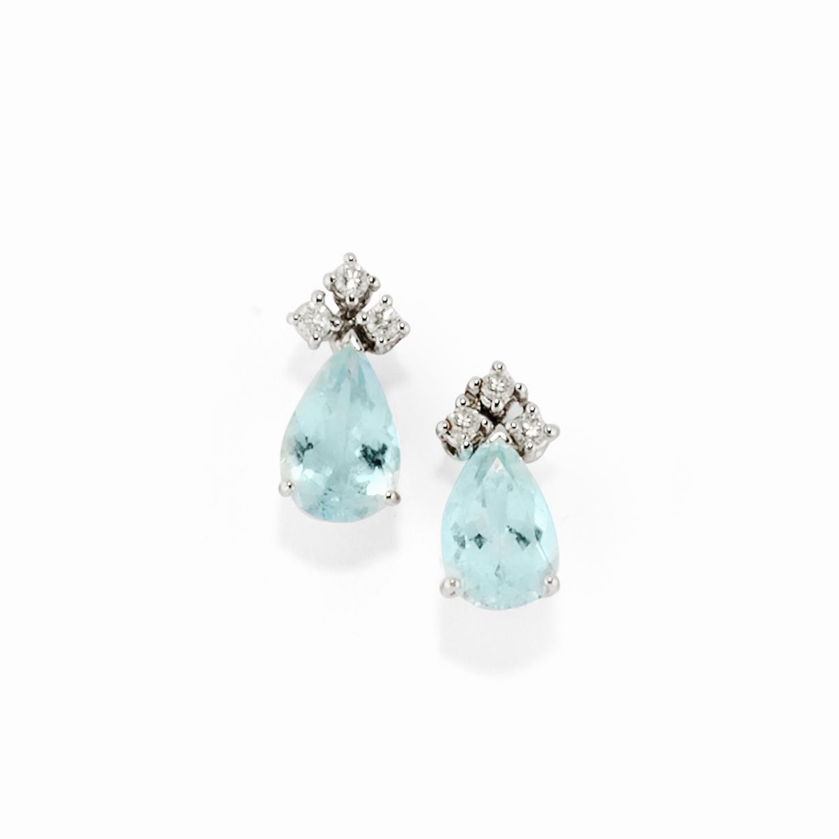18k white goldwith pear cut aquamarines totaling approximately 3.00 carats and small brilliant cut diamonds, with a pin and butterfly clasp.