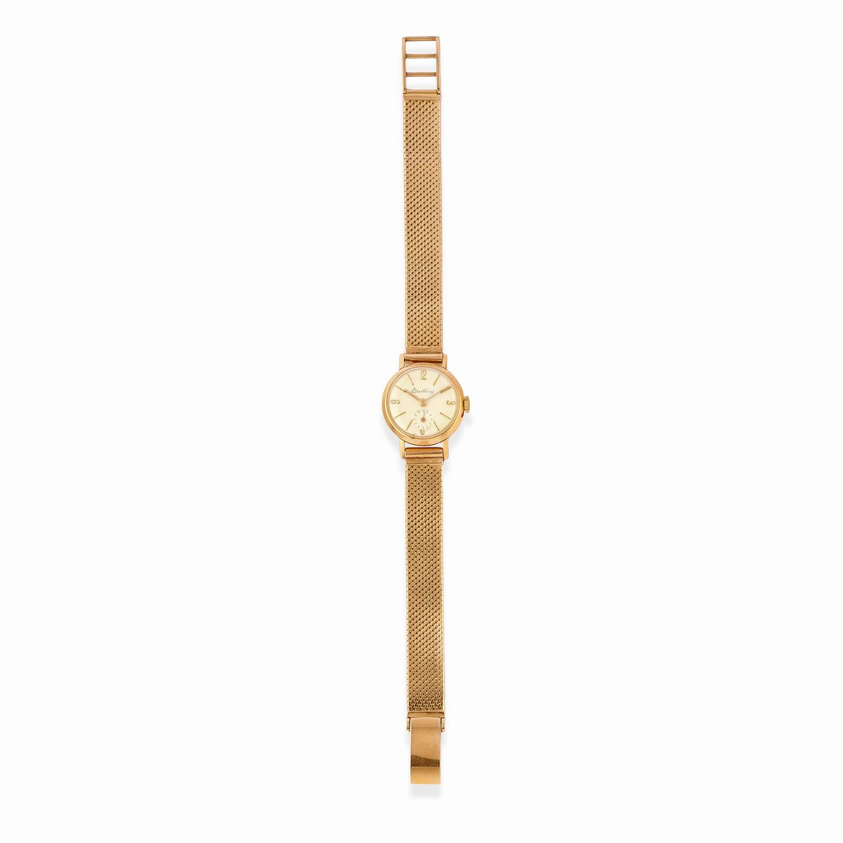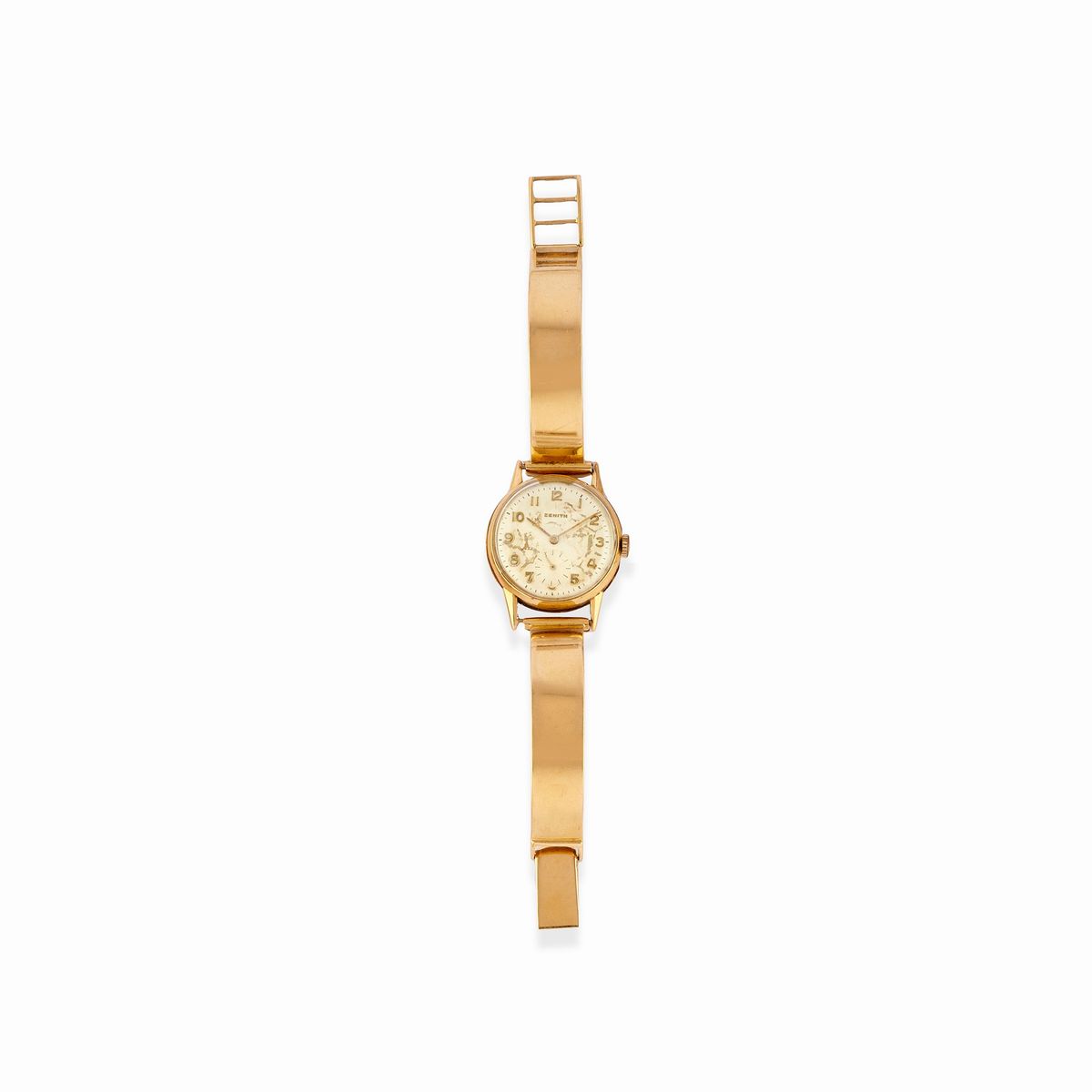 18k yellow and white goldZenith, Lavrette, Breitling, round cases, light dials with Arabic numerals and indexes applied, hand-winding movements, defects (one damaged dial).