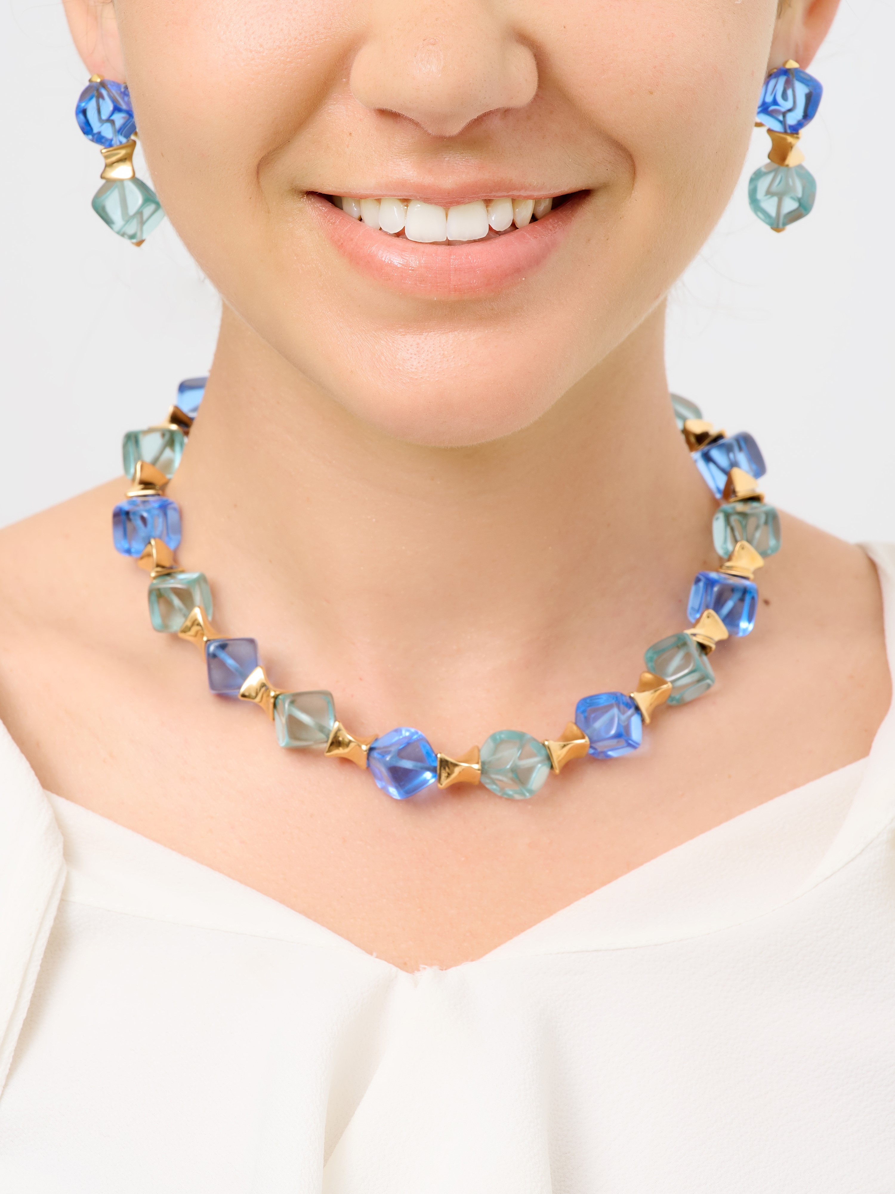 'Square beads' demi-parure