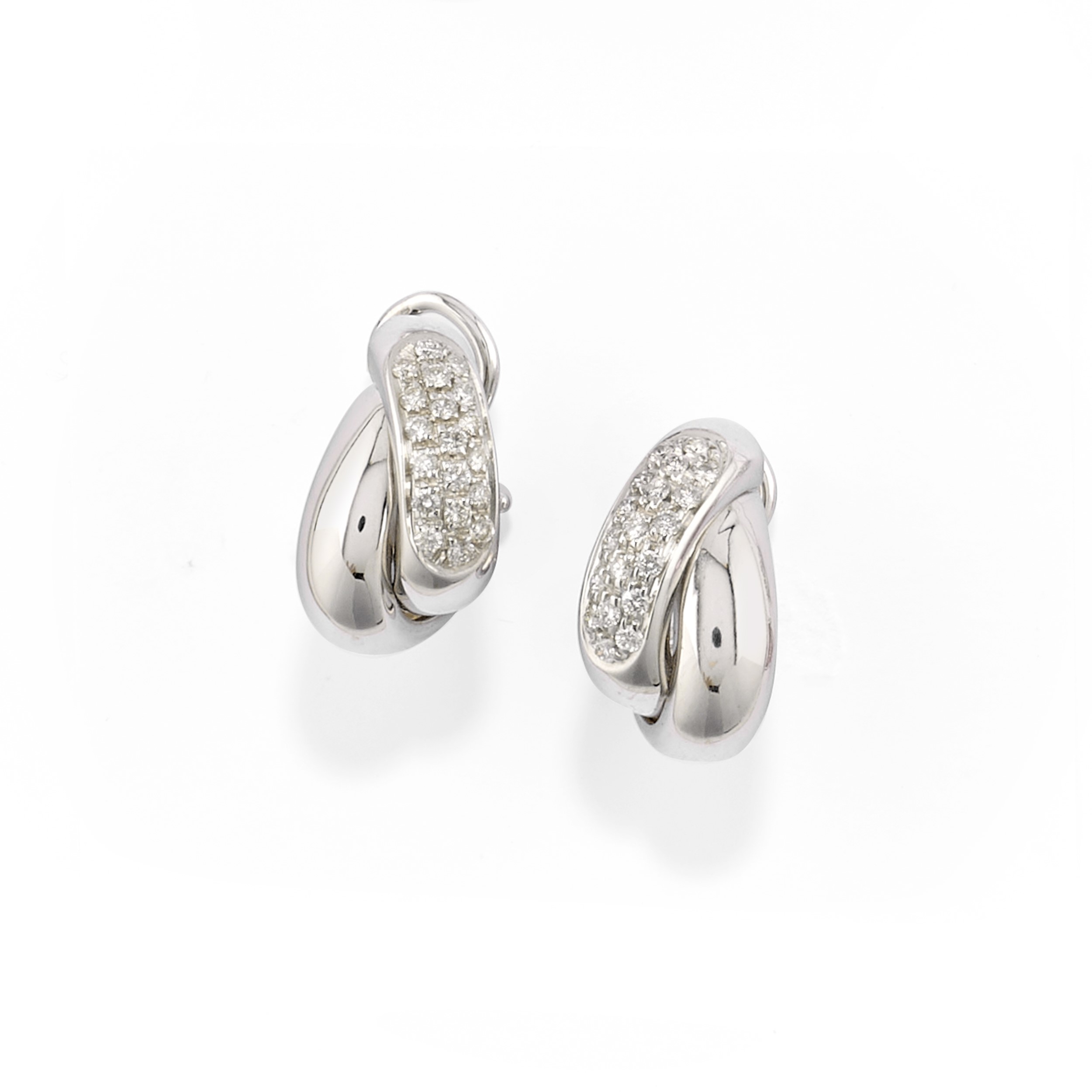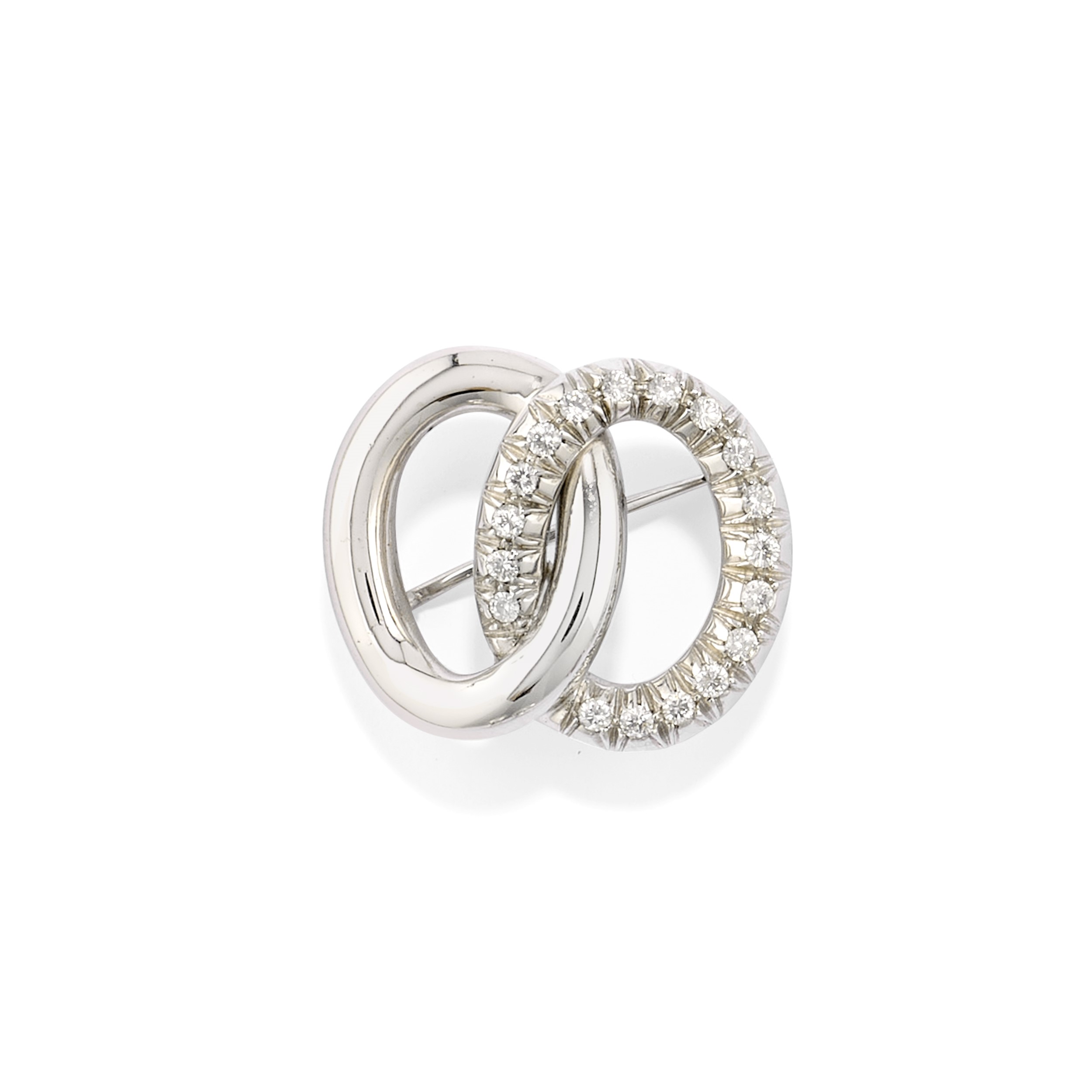 set with brilliant-cut diamonds, double-knot brooch and earrings fitted with posts.