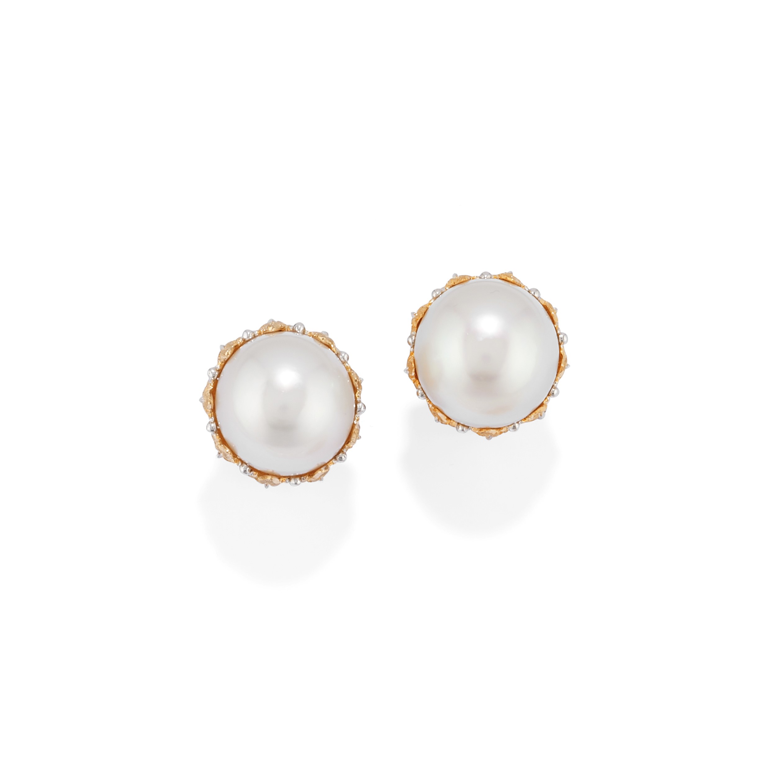 consisting of a one-strand necklace of South Sea cultured pearls, approx. mm 13,00/11,00, with engraved leaf clasp, and a pair of earrings with South Sea cultured pearls, approx. mm 15,00, engraved leaf decoration, fitted with posts, jewellery signed, stamped and numbered.