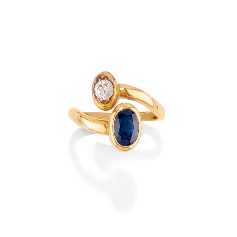 with a brilliant cut diamond of approx. ct 0,30 and an oval cut sapphire of approx. ct 1,50.
