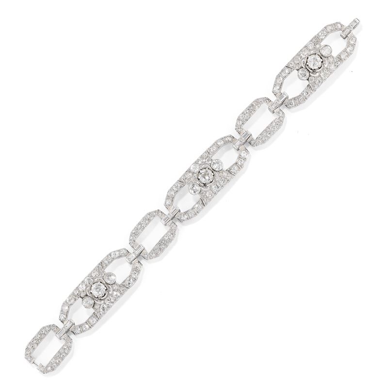 in geometric sectors in old and baguette cut diamonds of approx. ct 11,00.