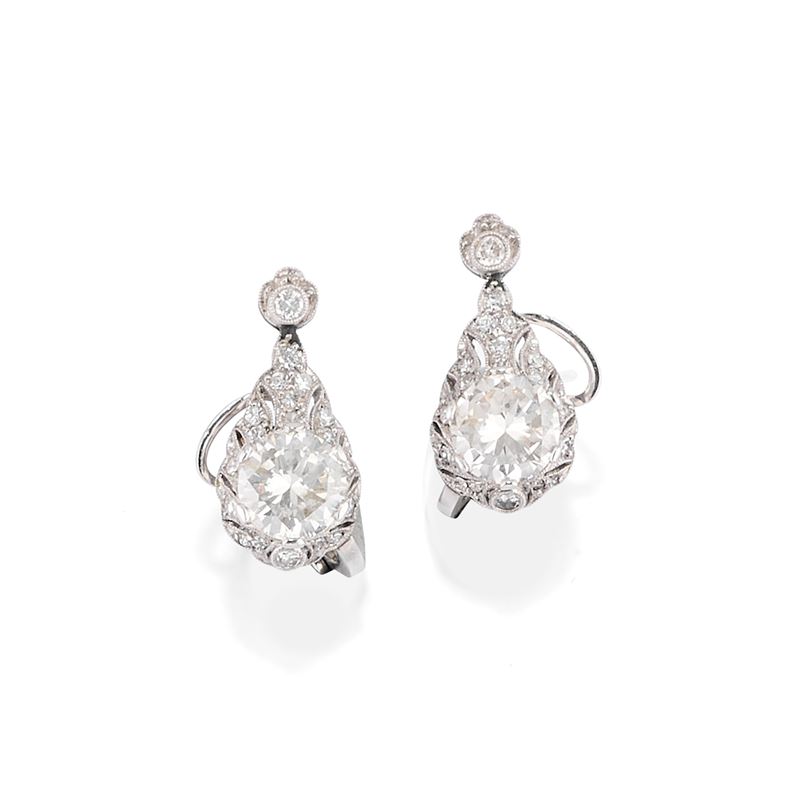 18k white goldtwo brilliant cut diamonds in the centre of approx. ct 3,00, surrounded by old and huit-huit cut diamonds, pin and clip closure, milligrano work.