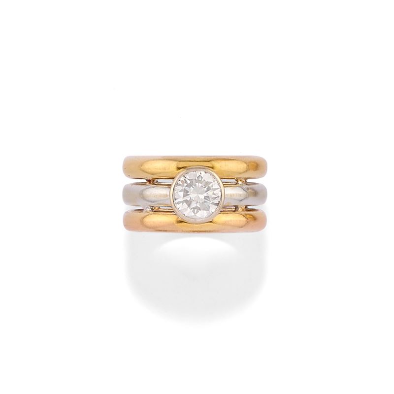 three 18k goldswith a brilliant cut diamond of approximately ct 0.75.
