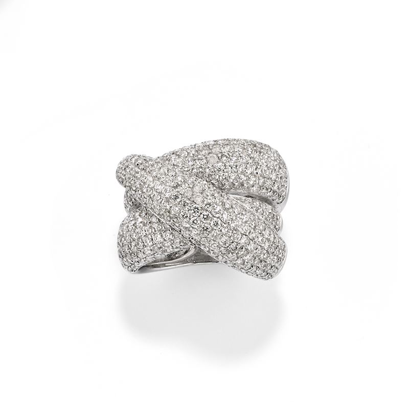 18k white goldthree-volute band, paved with brilliant-cut diamonds.
