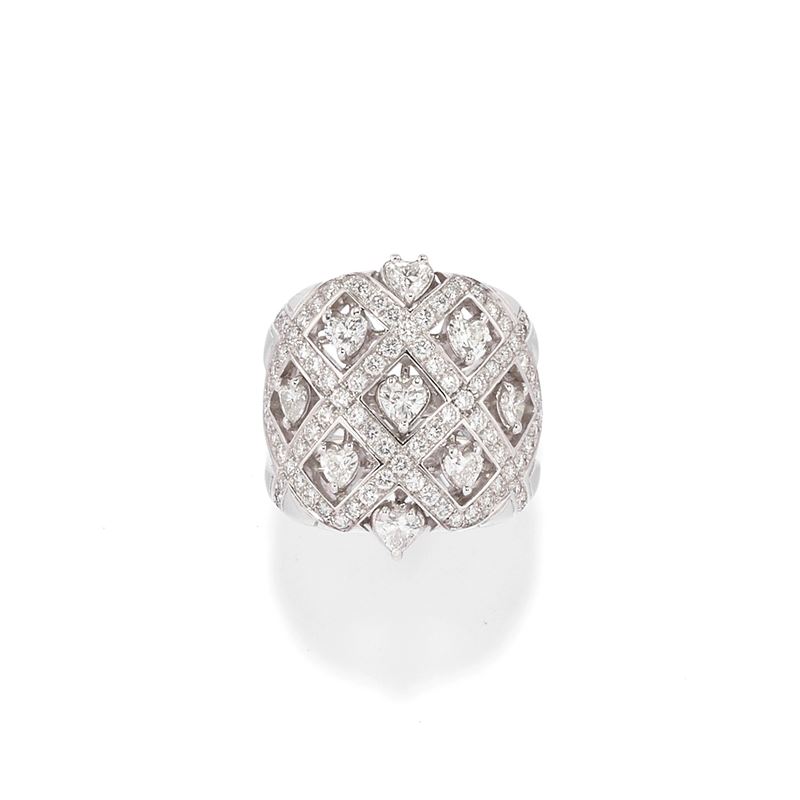 with a braided band, decorated with heart and brilliant cut diamonds totalling approximately 2.00 ct.
