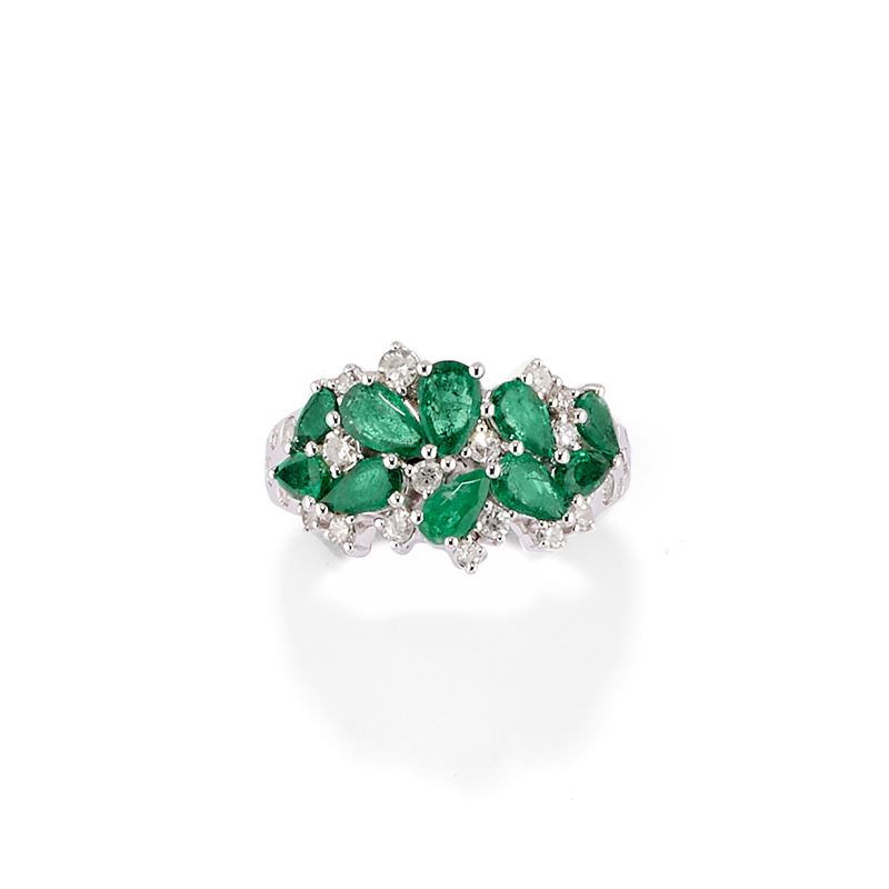 18k white goldembellished with pear cut emeralds of approx ct 1,30 and huit-huit cut diamonds.