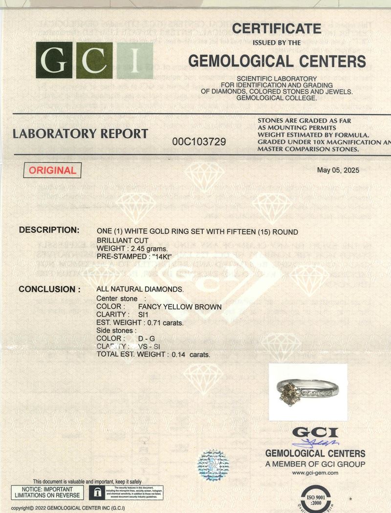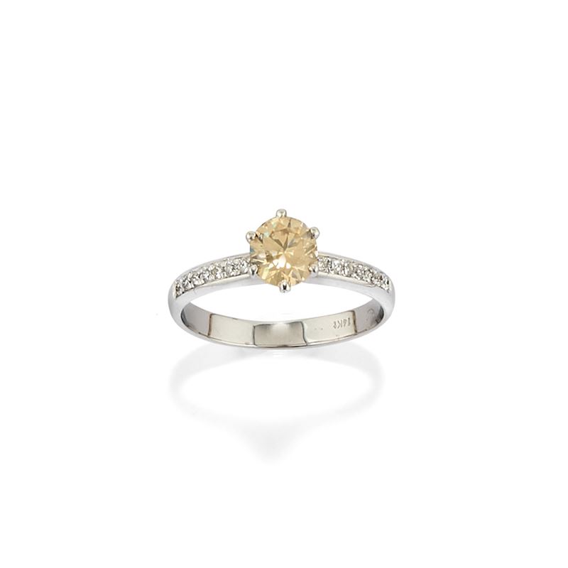 with a fancy yellow-brown diamond of approximately 0.71 ct and decorative brilliant-cut diamonds for a total of approximately 0.14 ct.