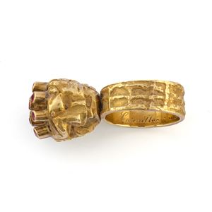 Ring with rotating head and rubies, 1950s