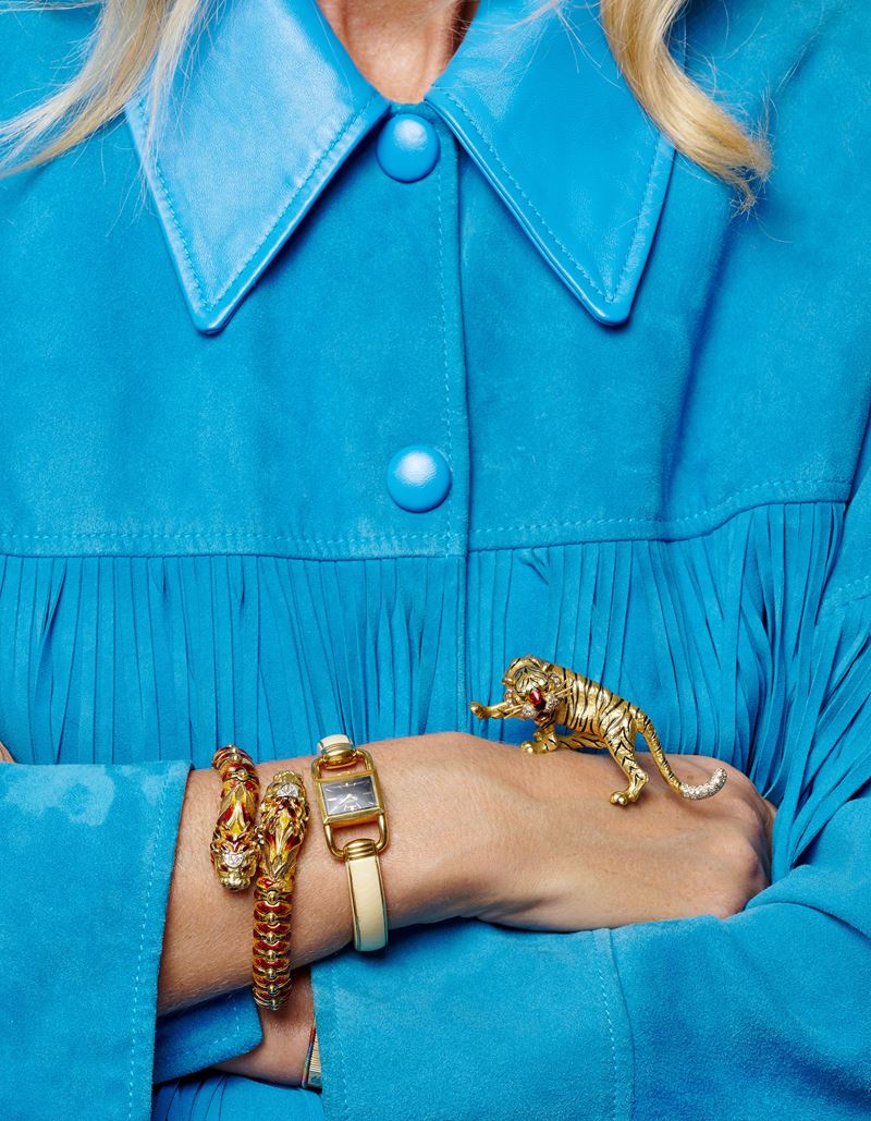 18k yellow goldwith polychrome enamels, emerald eyes, and face and tail of brilliant cut diamonds.