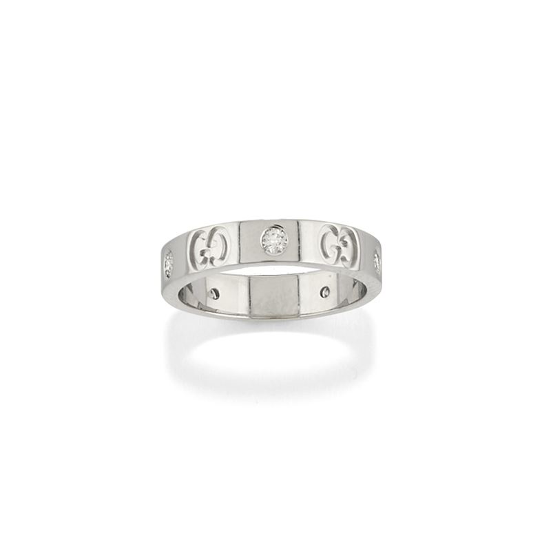 in 18k white golddecorated with five brilliant-cut diamonds for a total of approximately 0.15 ct, with box.