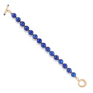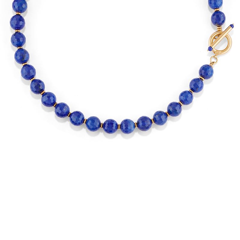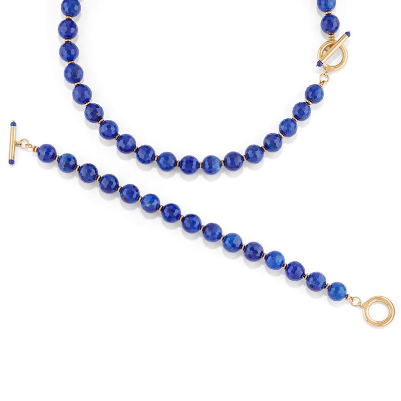 18k yellow goldconsisting of a necklace and bracelet with a single strand of faceted lapis lazuli beads of approx. mm 10,00.