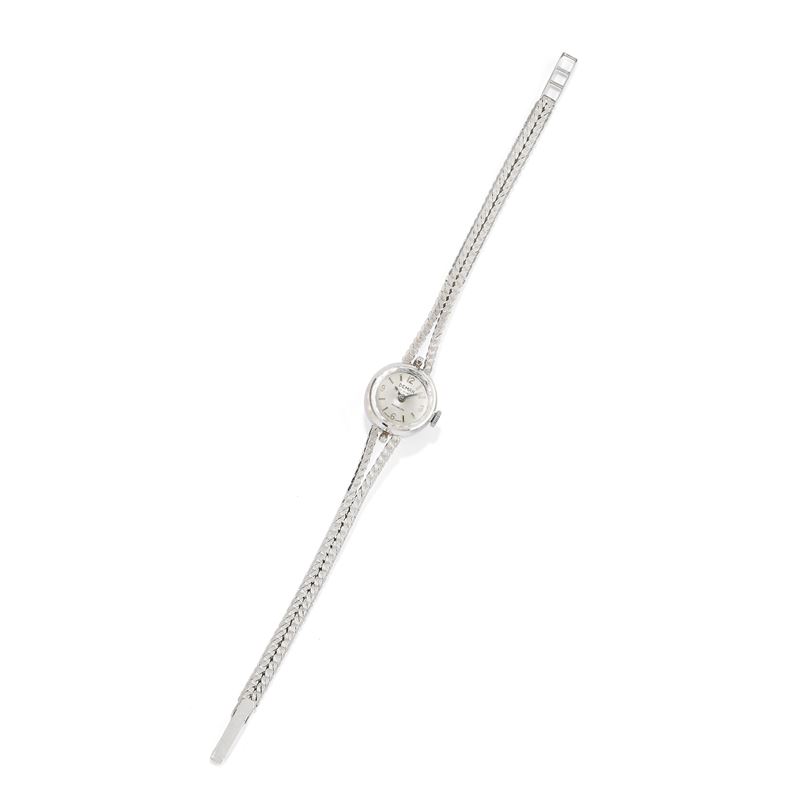 18k white goldRound case, silver plated dial with applied hour markers and Arabic numerals, manual winding movement, to be serviced.