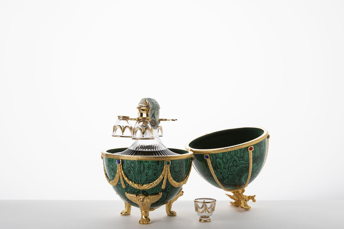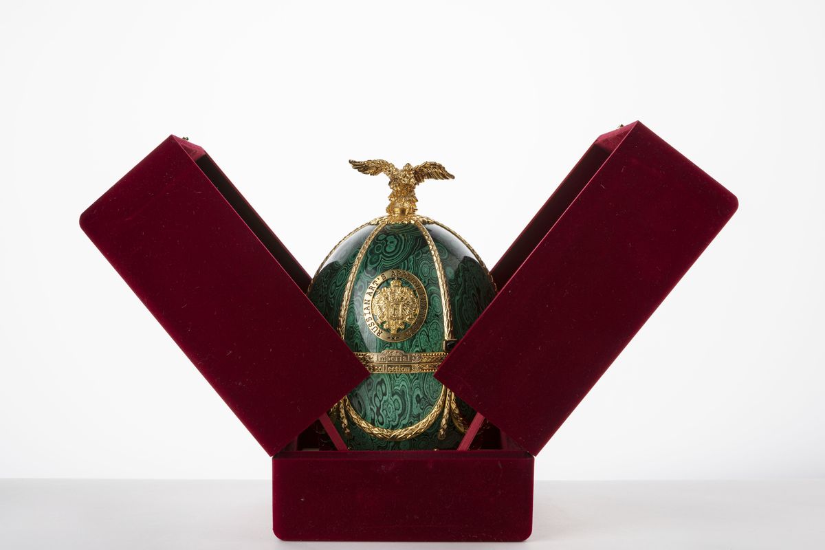 Fabergé style egg, containing Super Premium Vodka Imperial Collection, distilled in Smolensk with Saratovskaya wheat and water from lake Ladoga.Coming in original case.