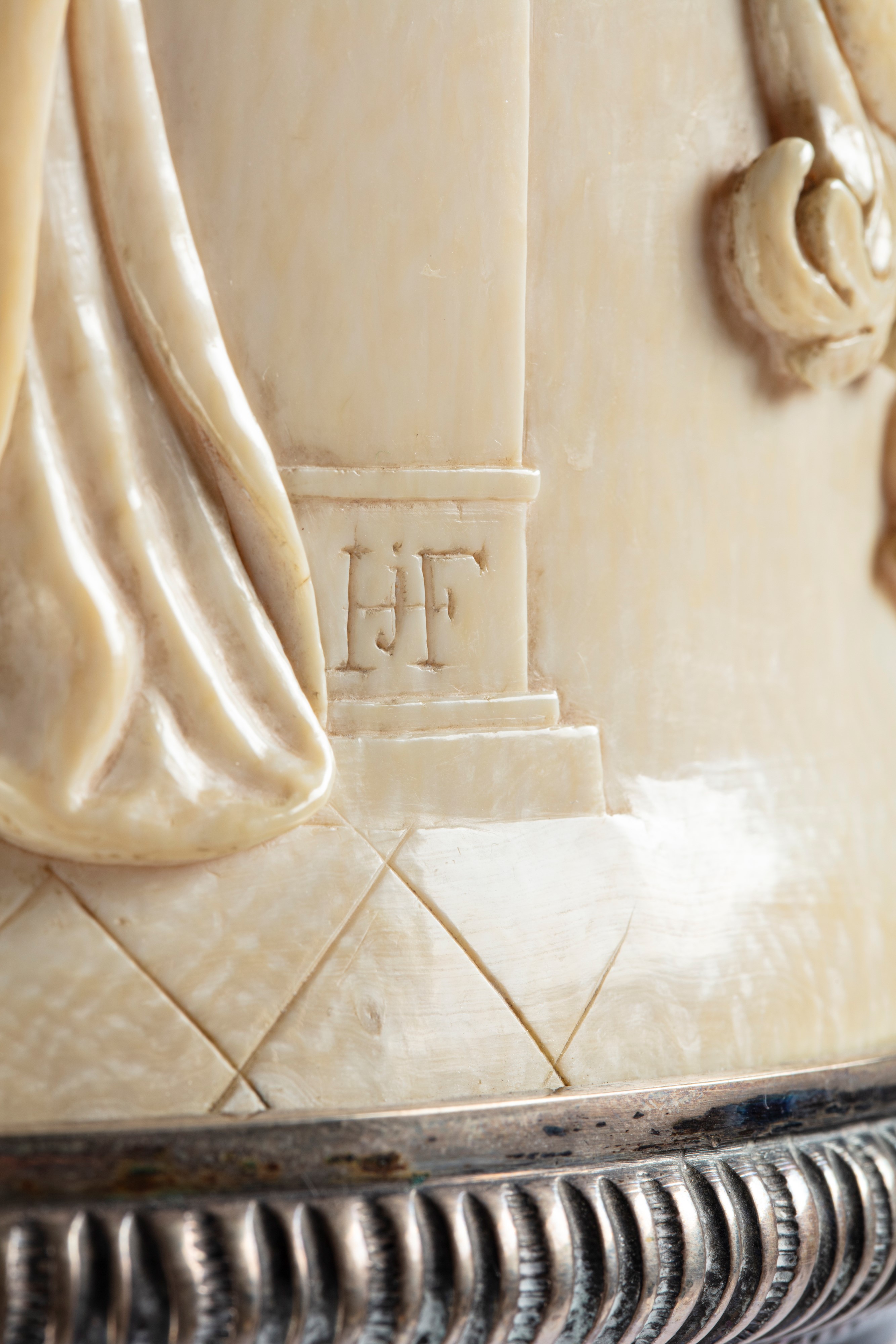 A large ivory cup, with silver mounts. Berlin, 19th century