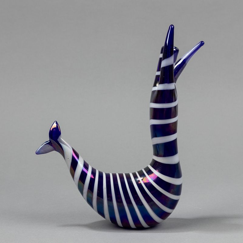 Sculpture model 4201. Blown acquamarina glass and lattimo glass inclusions