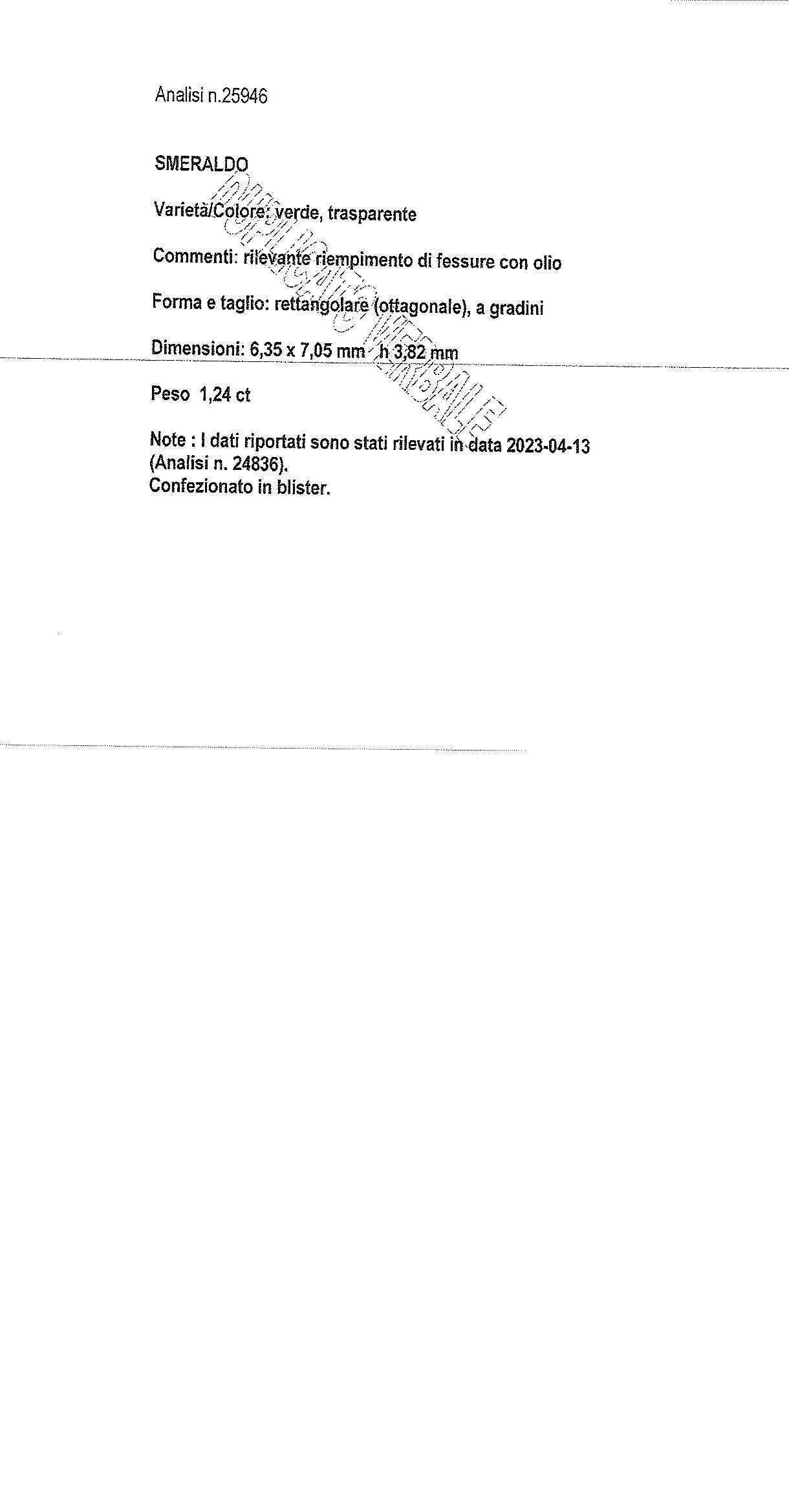 The emerald is accompanied by short report no. 25946 of 09/27/2023 CISGEM, Milan, and verbal analysis no. 24836.