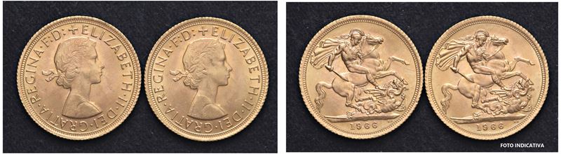 ELISABETTA II (1952-2022) – Lotto di 2 sterline 1966, Londra.