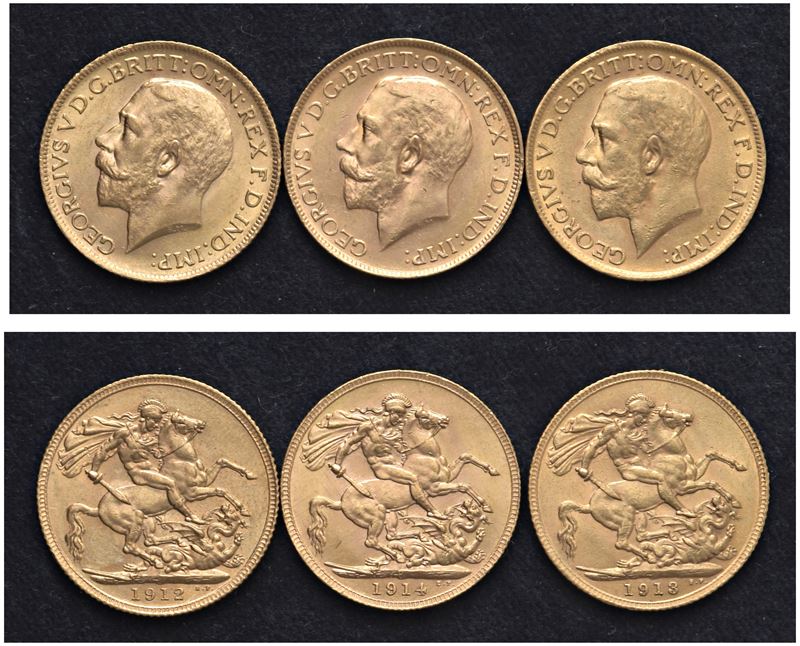 GIORGIO V (1911-1936) - Lotto di 3 sterline (1912, 1913 e 1914 P)