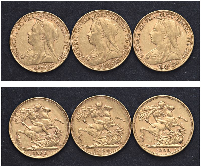 VITTORIA (1837-1901) - Lotto di 4 sterline (1893, 1894, 1895 S, 1899)