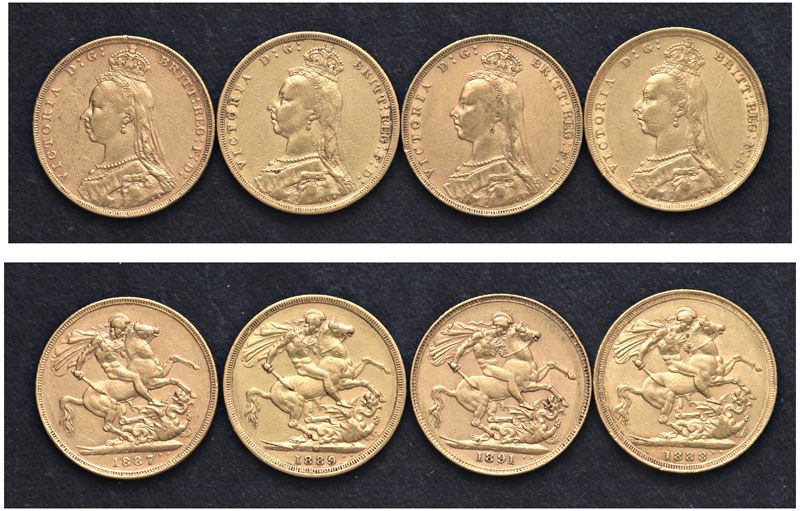 VITTORIA (1837-1901) - Lotto di 4 sterline (1887 M, 1888 S, 1889 M, 1891)