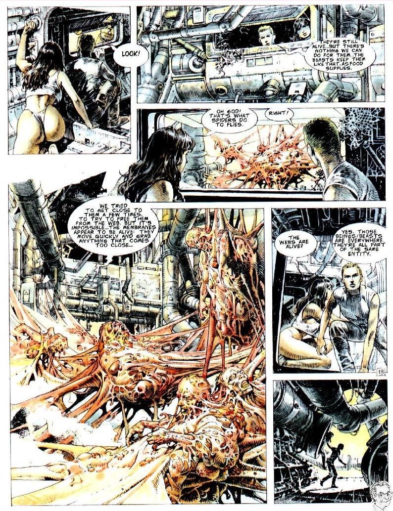 Original comic art made by Serpieri for pag. 18 of the fourth chapter of Druuna "Carnivora", published for the first time in Comic Art magazine in 1991. A condensation of eroticism and science fiction, the two ingredients that have made the saga of this sexy heroine famous all over the world. Signed.
