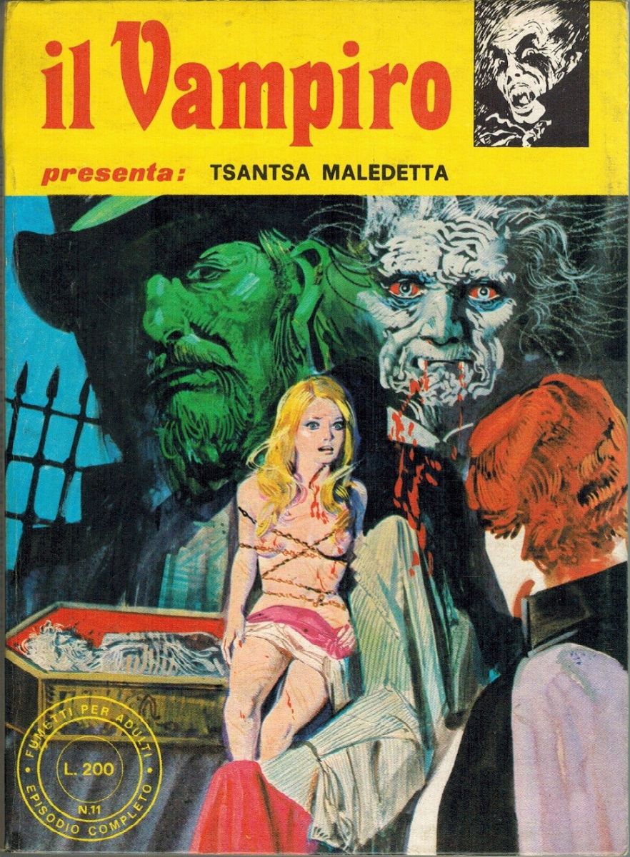 Original cover made by Dangelico for "Tsantsa Maledetta", published on Il Vampiro presents n. 11 by Edifumetto in 1972.
