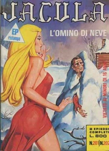 Original cover made by Studio Giolitti for "L'omino di neve", published on Jacula n. 201 by Ediperiodici in 1977. Work censored for reprint on Jacula Collezione n. 101.