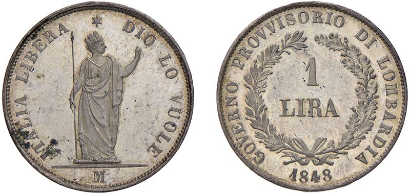Obverse: Value within two branches of laurel and oak; Reverse: Italy with a turreted crown surmounted by a star, standing facing right, raising her left hand and holding a spear in her right. Pagani PP 526. CNI 7. Crippa 8/C. Very rare.