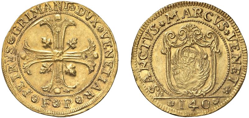 In this specific case, we are presented with a magnificent 12-zecchini coin, a denomination previously unheard of in the literature for the Doge Pietro Grimani, but fully consistent, from a philological point of view, with the issues made by previous and subsequent doges.