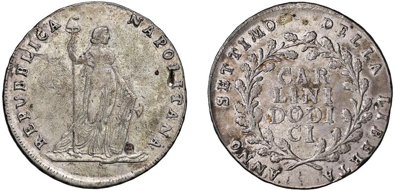 Obverse: Liberty standing left, holding a staff surmounted by a Phrygian cap in her right hand, her left hand resting on a fasces with an axe placed outside and an X-shaped binding; - Reverse: Inscription within two crossed oak branches.