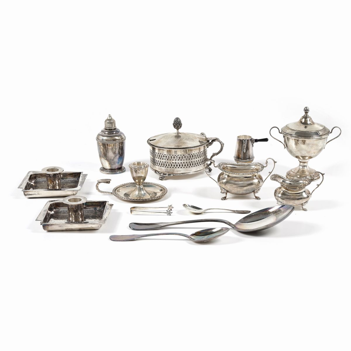 Lot of fifteen silver and metal silvery objects, with boxes