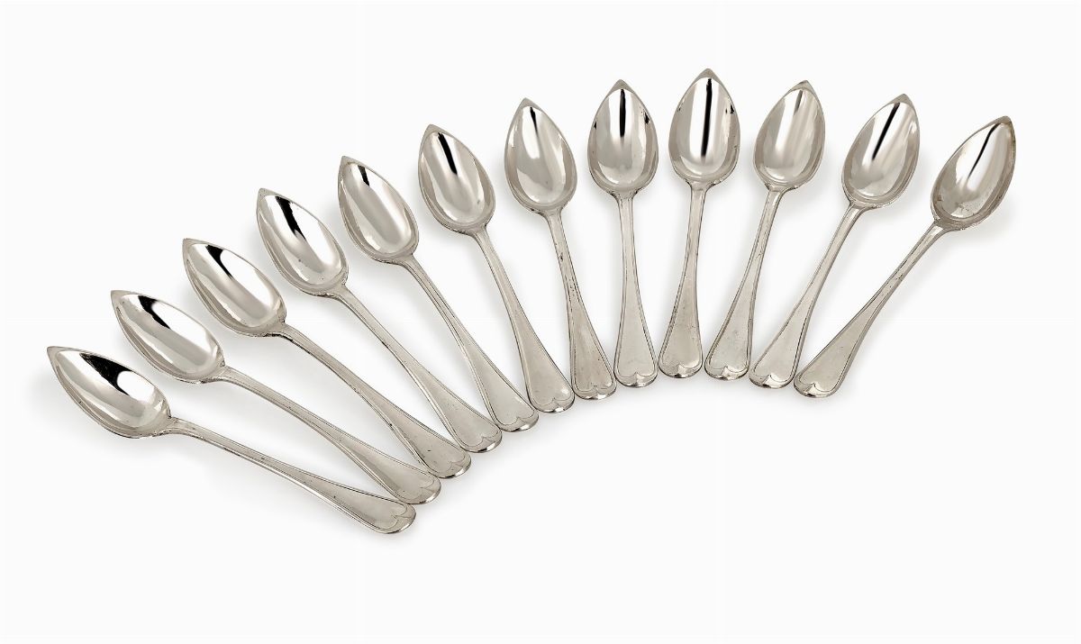 A SILVER SAUCE-POT WITH TWELWE SPOONS, END XVIII - BEGINNING XIX CENTURY