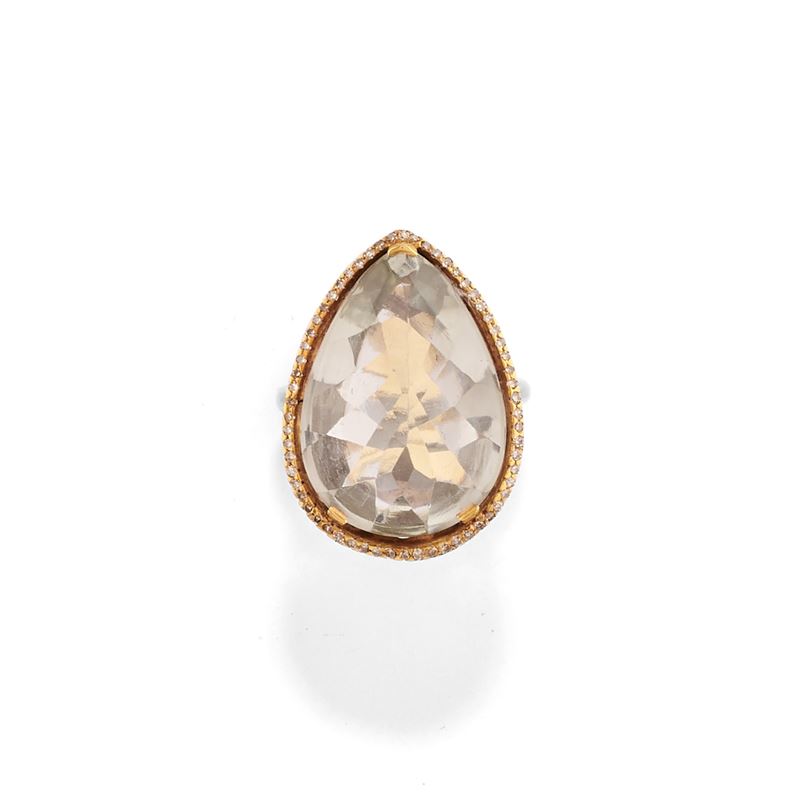18k yellow goldpear cut glass paste in the centre surrounded by huit huit cut diamonds