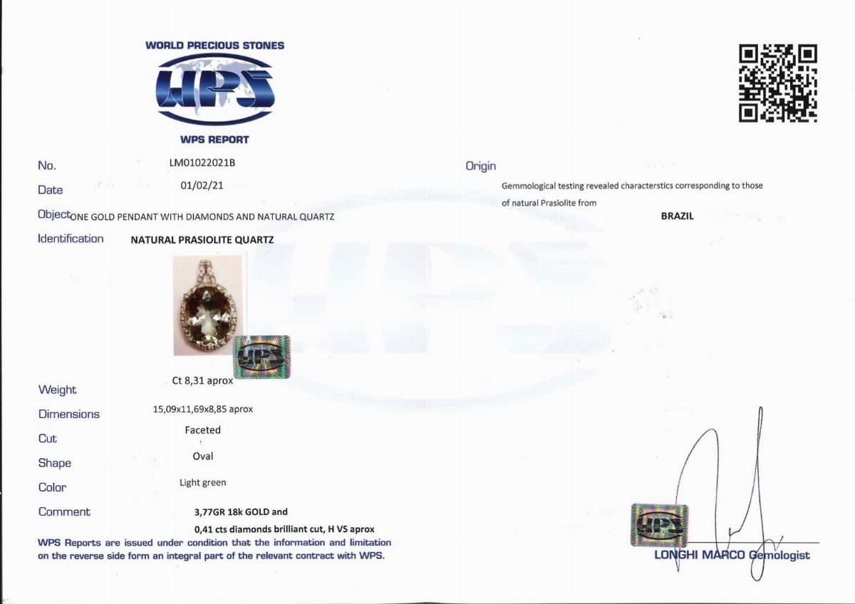 A 18K white gold, prasiolite quartz and diamond pendant, with certificate