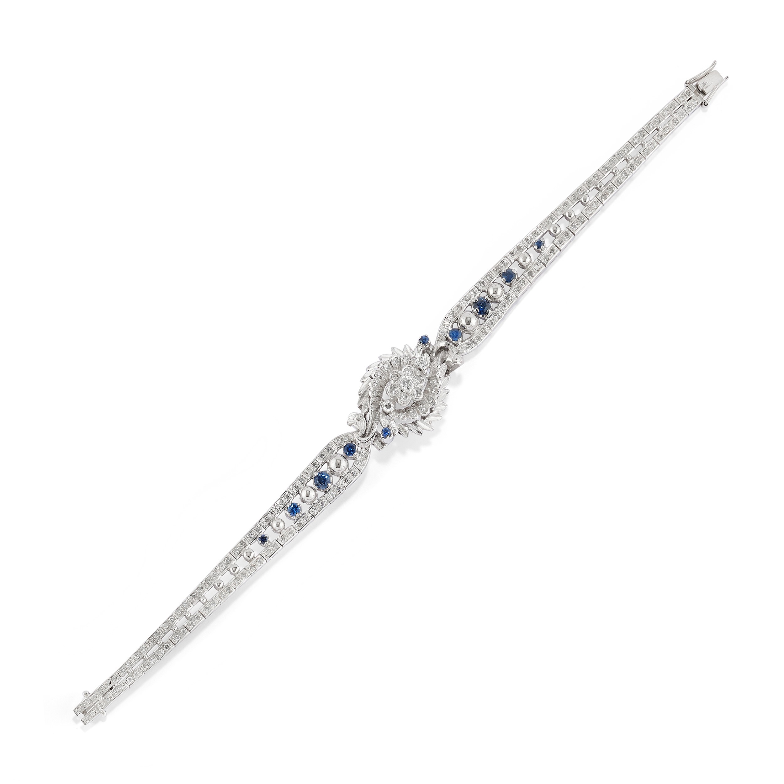 18k white goldwith round and oval cut sapphires totalling approx. 1.50 ct and brilliant-cut and huit-huit diamonds totalling approx. 1.50 ct.