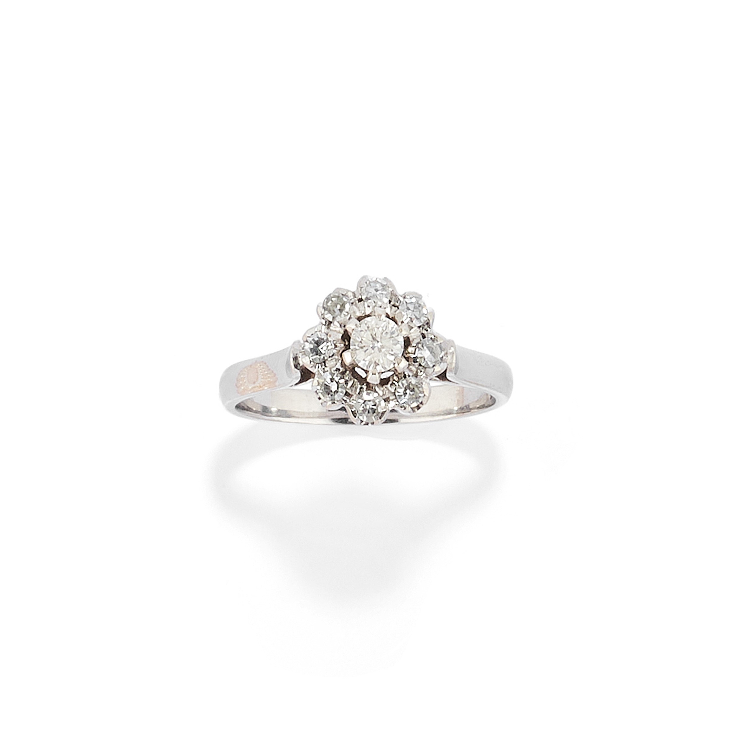 set with brilliant-cut and huit-huit diamonds totalling approx. 0.90 ct, fitted with French wire.