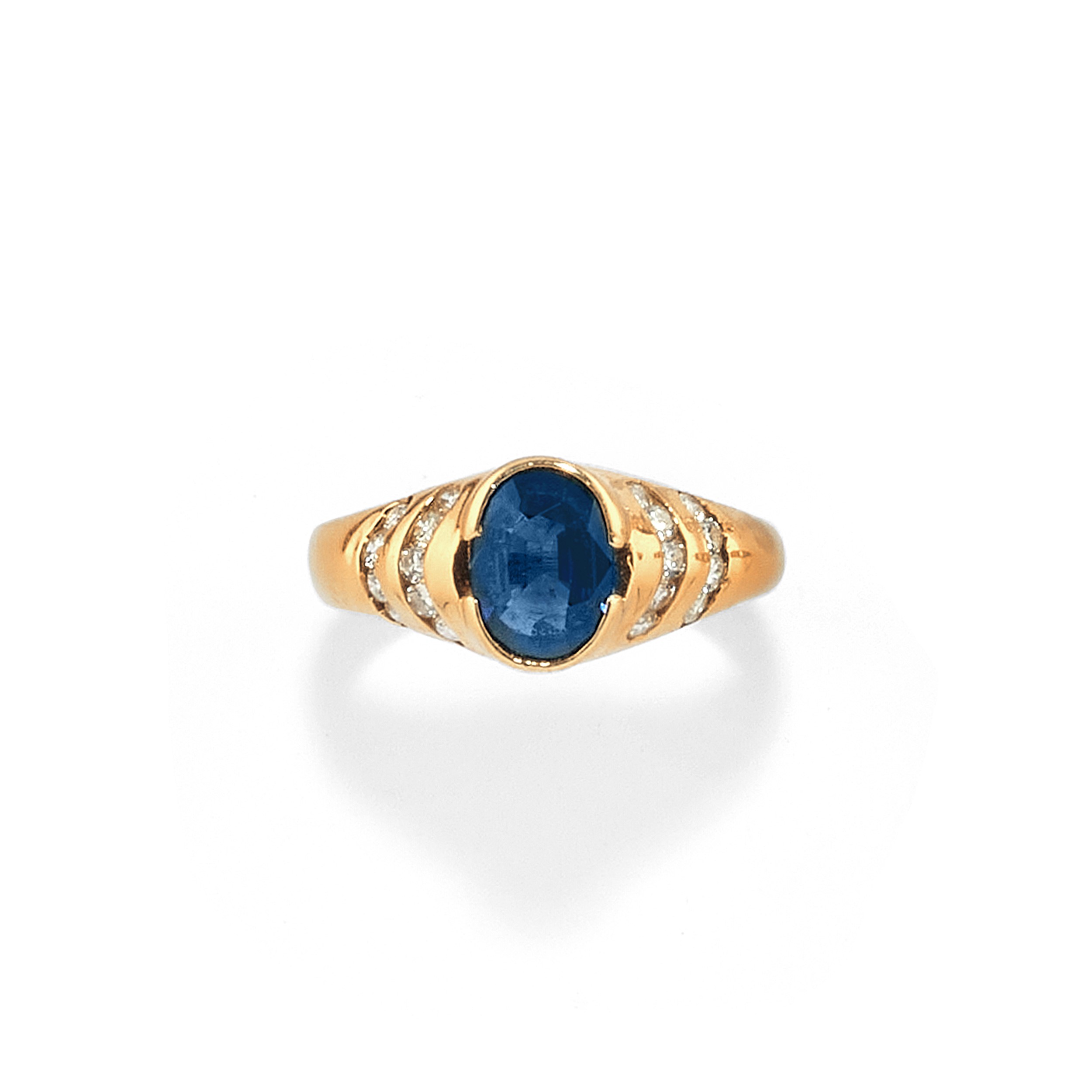 18k two-color goldof different shapes and styles, with sapphires, diamonds, cultured pearls and enamels, one signed "La Nouvelle Bague".