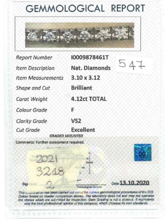 Brilliant cut diamond approx. ct 4,12, prob. color F, clarity VS2, with IGC certificate