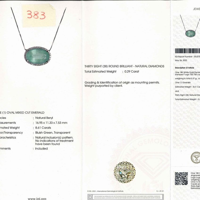 A 18k white gold and emerald necklace, with certificate