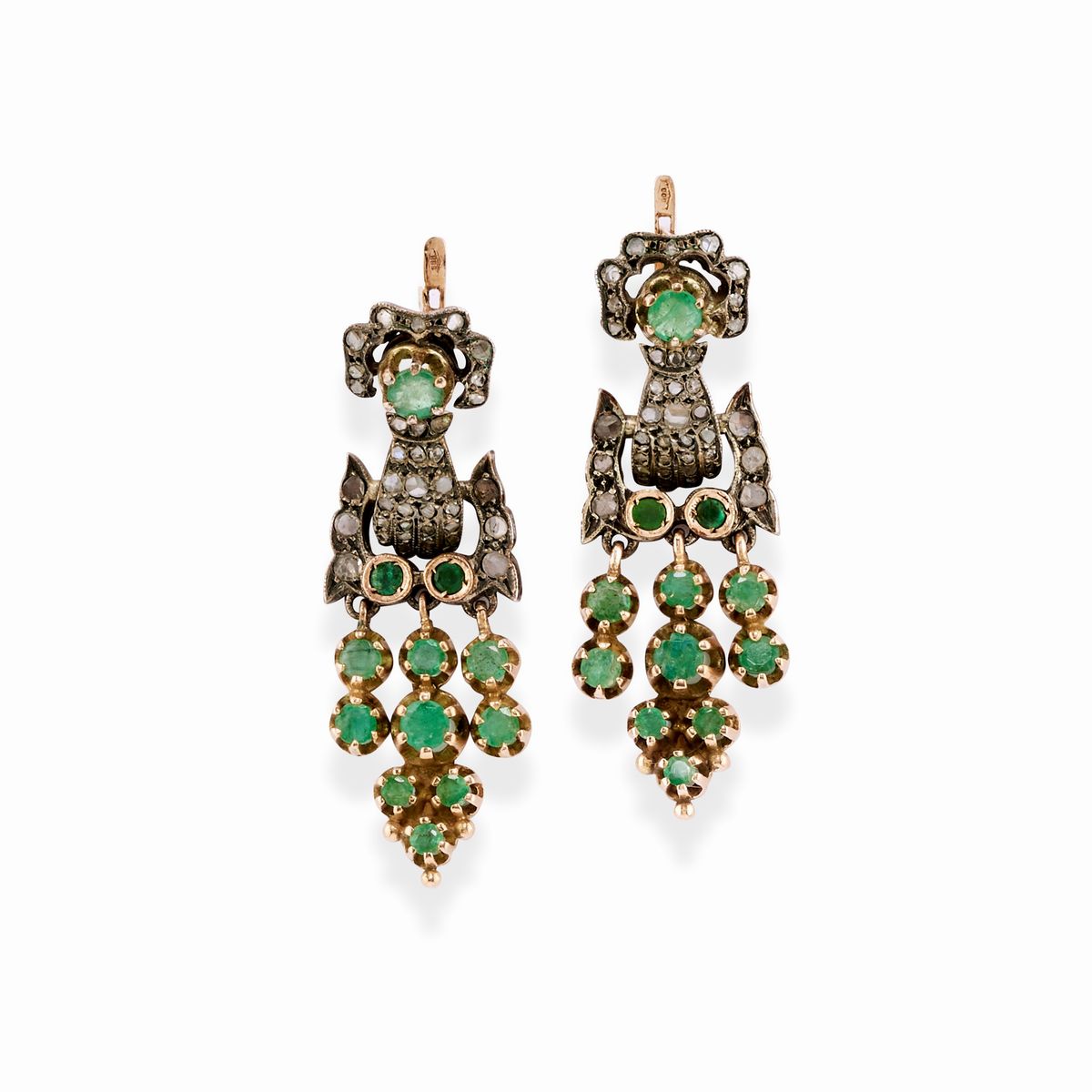 A 18k yellow gold, silver, emerald and diamond demi parure
